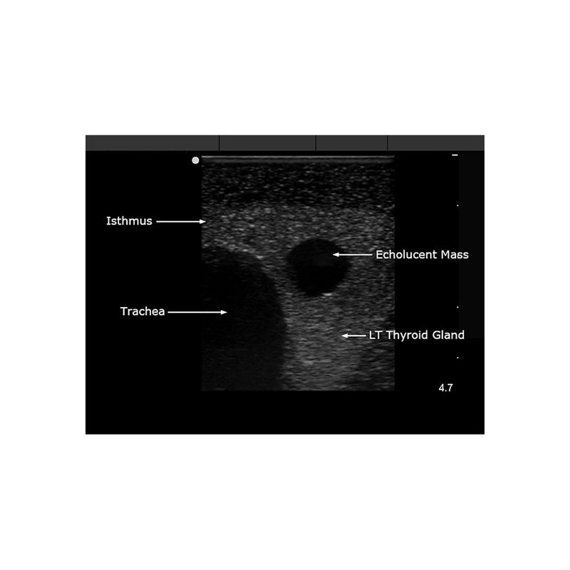 模型具有甲状腺超声显像,可进行甲状腺正常组织、常见疾病及其毗邻解剖结构的超声探查手法训练、标准切面获取、大小测量、病变辨识,同时还可以在超声引导下进行甲状腺细针穿刺活检训练;