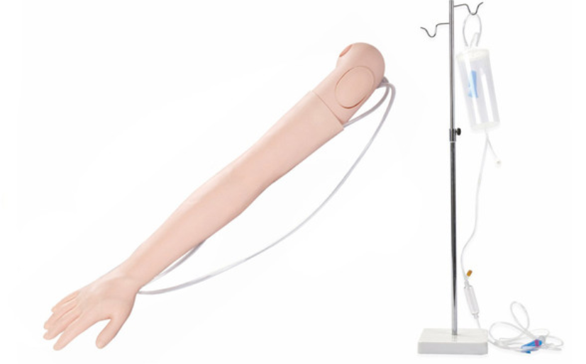 整体产品具有操作手感真实、逼真,外观肤色形态美观、经久耐用、消毒清洗不变形、拆装方便等特点。手臂上分布的主要静脉血管系统,可进行静脉的注射、输液(血)、抽血等穿刺训练功能。可进行三角肌部位的肌肉注射。 上肢可旋转180度,可模仿真人手臂能转动,便于穿刺练习。