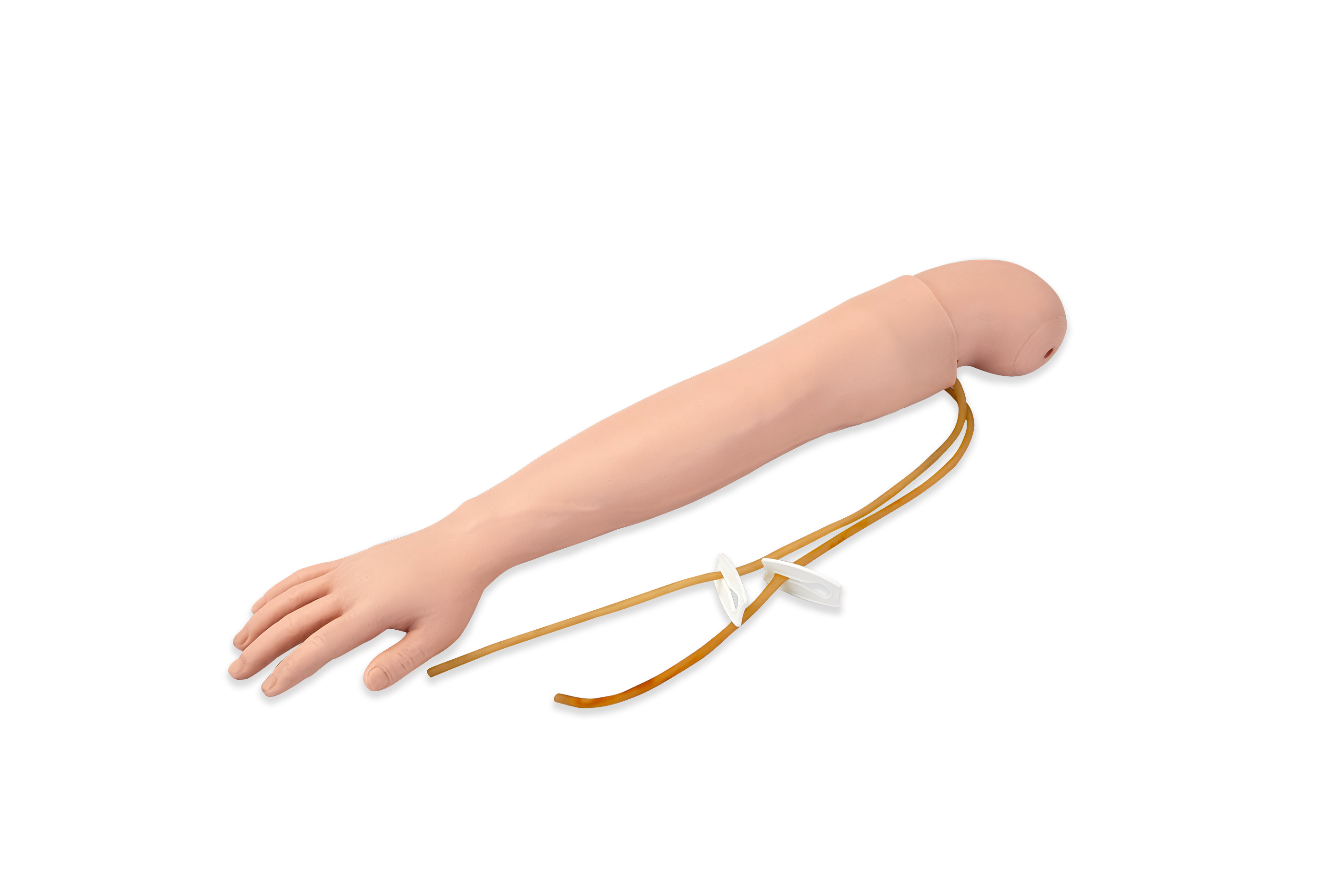 该模型由仿真手臂与蠕动泵(电子血液循环装置)组成,具有真实的血流动力学所产生的血液循环功能,具有操作真实、功能强大等特点。手臂上分布的主要静脉血管系统,可进行静脉的注射、输液(血)、抽血等穿刺训练功能。演示血液循环功能。可进行三角肌部位的肌肉注射。上肢可旋转180度,可模仿真人手臂转动,便于穿刺练习。