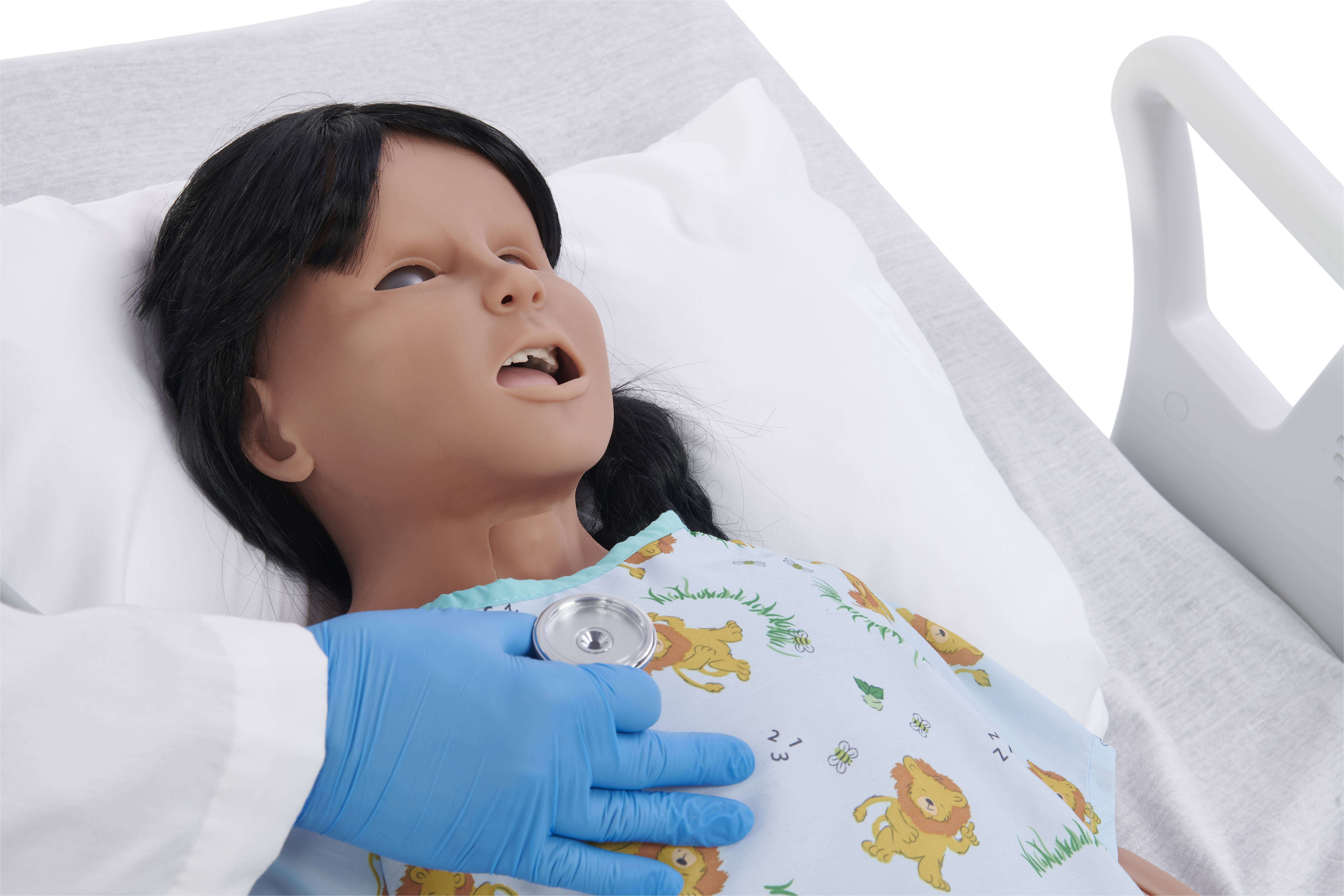 阿雅模拟一个6-7岁的孩子,其涵盖最常见和紧张的儿科急救场景,如药物过量或枪击受伤。学生和医疗专业人员可以在一个无风险的环境中进行评估,应用临床决策,并提供医疗干预措施,帮助他们做好应对真实临床的准备。