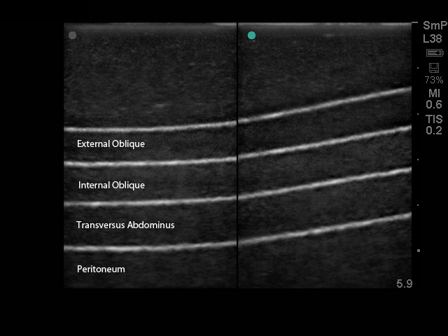 本模型能够与任何带腹部探头的超声影像检查设备连接使用,可用于培养用户关于超声引导下实施腹横肌平面(TAP)阻断局部麻醉手术相关的技能;当训练者练习穿刺腹外斜肌、腹内斜肌、腹横肌、和腹膜组织层时,可感受到真实的触觉感受。